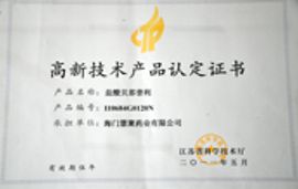 高新技术产品认定书